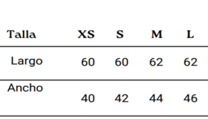 Tabla de tallas: