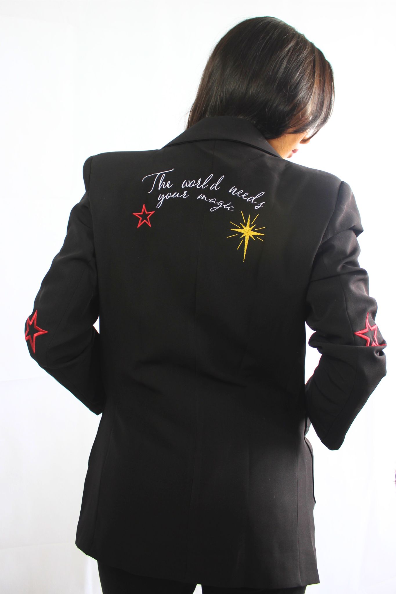 Los detalles bordados lo hacen realmente especial: estrellas y fases lunares decoran sutilmente la prenda, mientras que en la espalda, la frase “The world needs your magic” añade un mensaje poderoso que te acompañará a donde vayas. “Lunar Magic” es ideal para quienes desean expresar su estilo único y su fuerza interior con una prenda que captura la magia de cada momento.