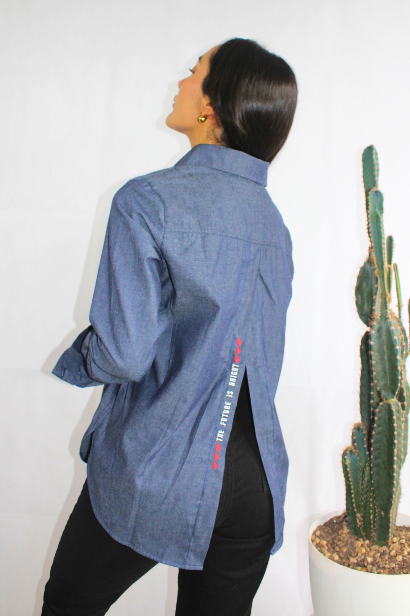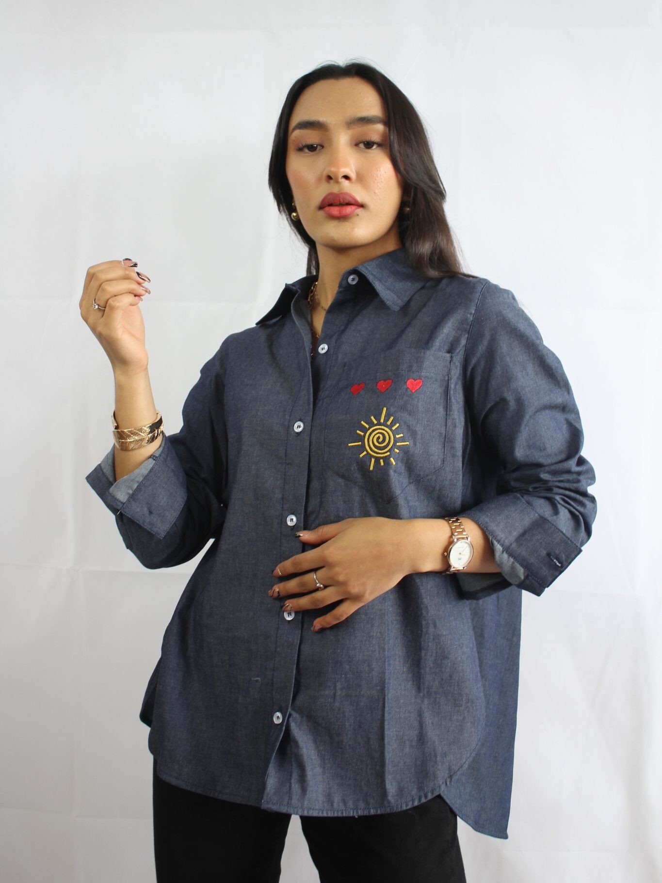 Explora el estilo bohemio y lleno de detalles con nuestra camisa “Sunset Love”. Hecha de chambray en un elegante color azul oscuro, esta prenda es una mezcla perfecta de comodidad y diseño único. El material suave y resistente la convierte en una elección ideal para quienes buscan estilo y durabilidad.